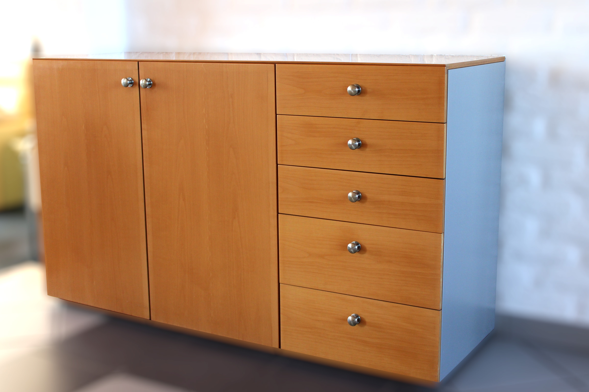 Beautiful designer cabinet made of high-quality wood with elegant silver knobs, in excellent condition. This timeless piece combines craftsmanship with a refined finish, making it a perfect fit for both modern and classic interiors.