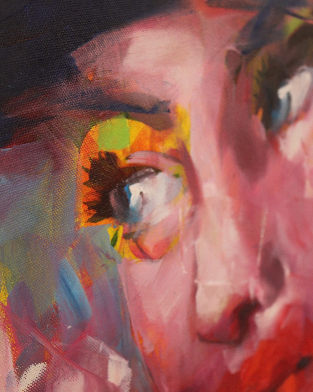 Color plays a central role in his work. Vibrant colors overlap and collide, portraits conveying vibrancy and vitality. The interplay between abstraction and figuration gives the paintings a strong psychological presence, the subject appears both tangible and fleeting at the same time.