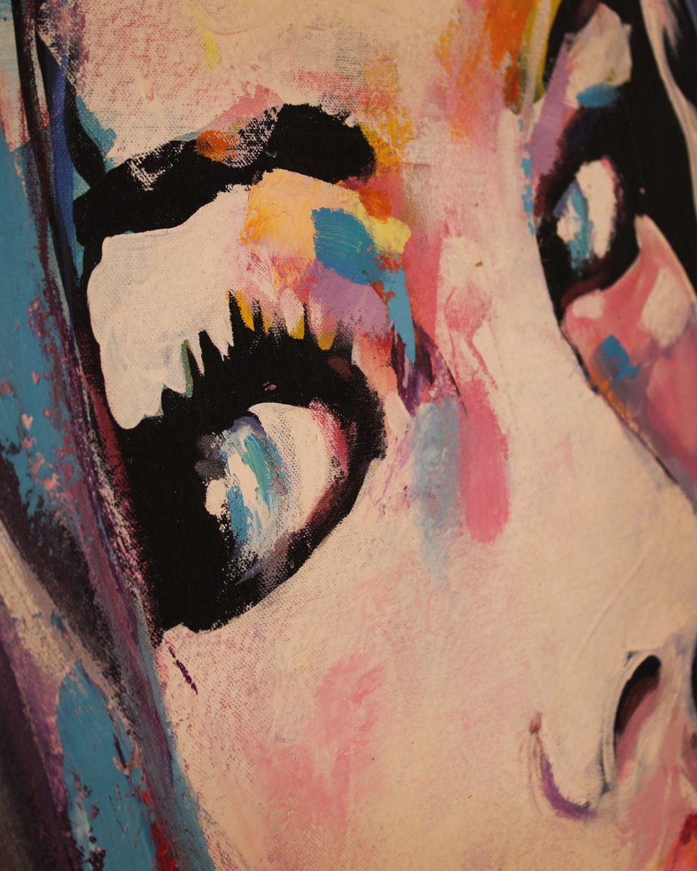 The artist Jimenez´ style is immediately recognizable through his expressive, highly gestural approach to portraiture. His paintings seek to reveal the unique inner character of each subject, using dynamic brushstrokes and vibrant, overlapping colors. While the faces remain figurative and identifiable, thick layers of paint and spontaneous marks create a lively surface where abstraction and figuration merge, giving the portraits a strong emotional and psychological presence.
