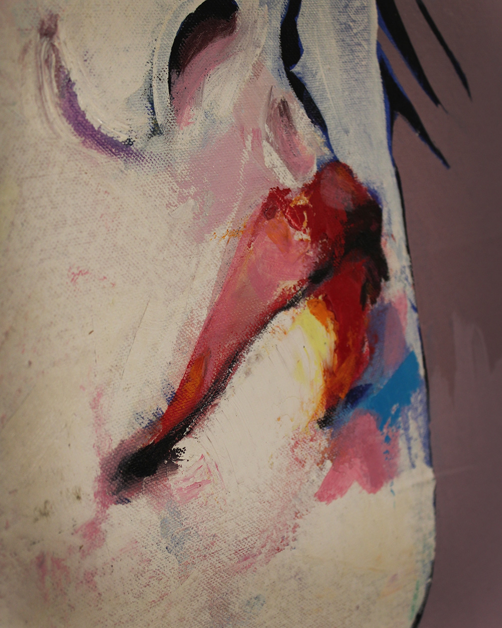 Color plays a central role in his work. Vibrant colors overlap and collide, portraits conveying vibrancy and vitality. The interplay between abstraction and figuration gives the paintings a strong psychological presence, the subject appears both tangible and fleeting at the same time.
