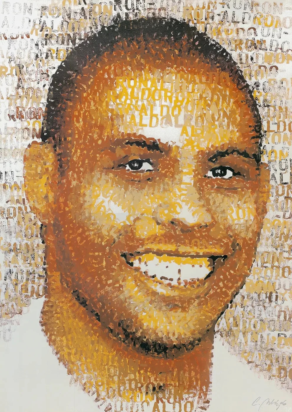 This artwork presents the soccer player Ronaldo through a refined offset lithography print on 300 g paper. Each piece is hand-signed, numbered, and dated, emphasizing its uniqueness and collectible value.