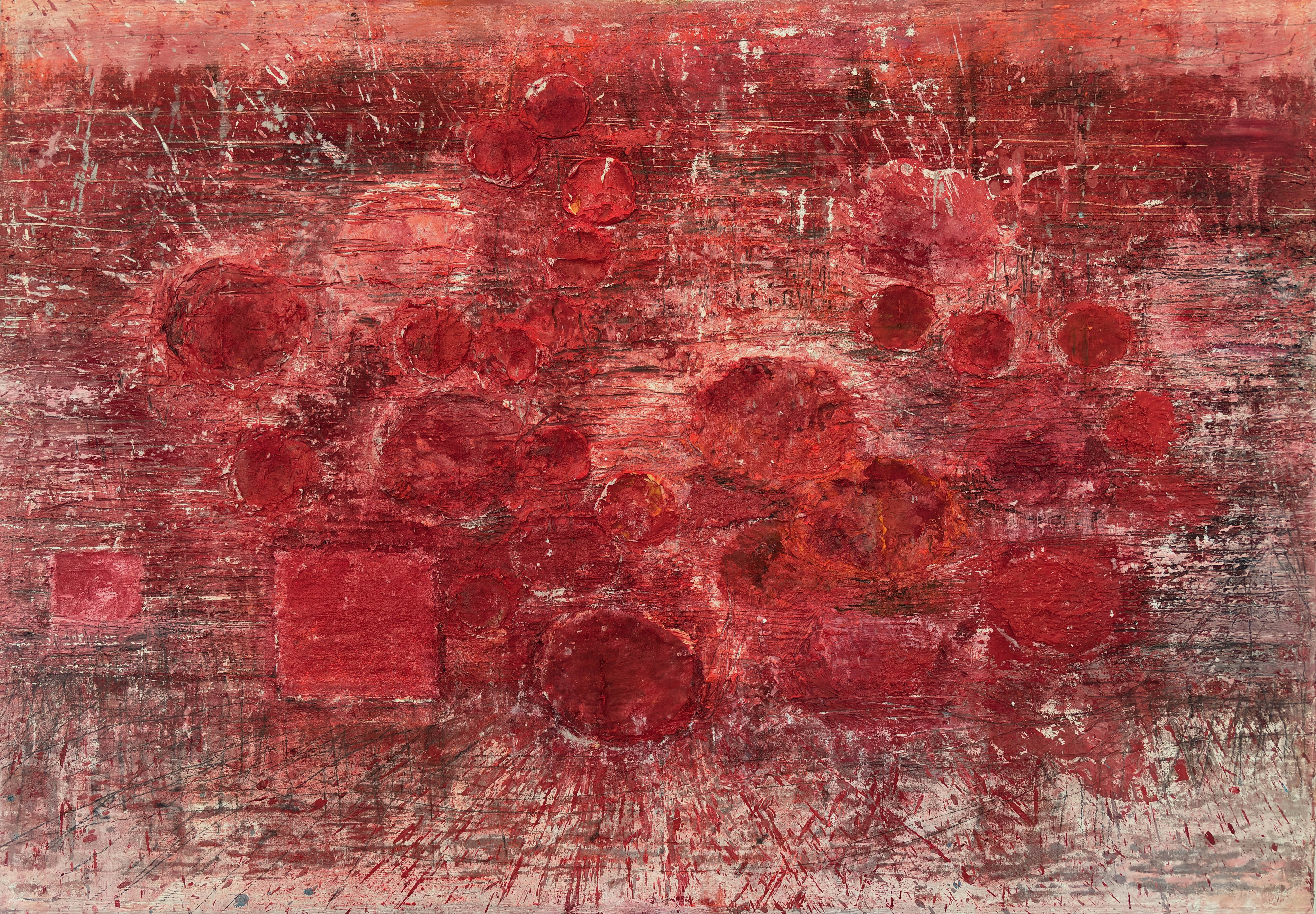 De Duitse olieverfschilder Annette Selle creëert werken die textuur, kleur en sfeer in balans brengen met poëtische subtiliteit. In dit werk lossen lagen rood en zachtroze op in abstractie, waardoor het schilderij een staat van onafhankelijkheid bereikt en de kijker een ruimte biedt om contact te maken met zijn eigen realiteit. De harmonieuze mix van serene tinten en dynamische texturen creëert een serene sfeer die de kijker uitnodigt om zich te verliezen in de schoonheid van abstractie en persoonlijke introspectie.